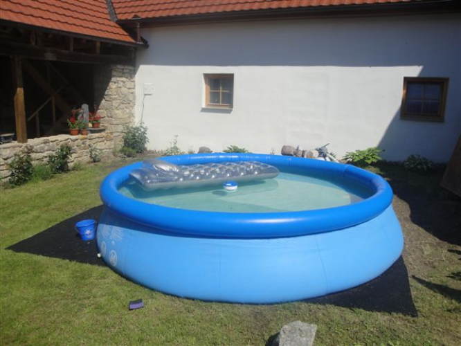 Dětský bazén a pískoviště je umístěno ve dvoře.