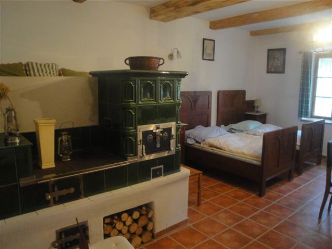 Vytápění: 3x kachlová kamna s pecí nebo elektrický kotel