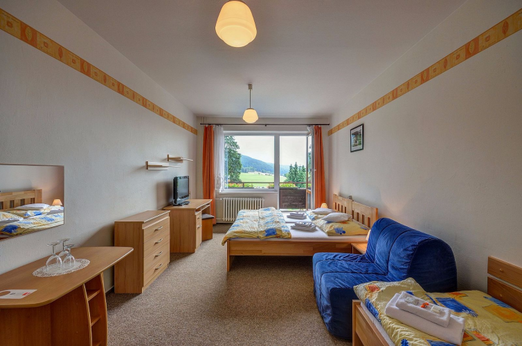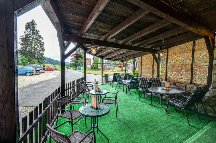 Nabízíme Vám široké zázemí včetně restaurace s teplou i studenou kuchyní, regionální speciality, bar pro noční vyžití , možnosti využití perličkové koupele, masáže, půjčovna kol, vlastní lyžárna, sušárna, venkovní gril s posezením a mnoho dalšího.