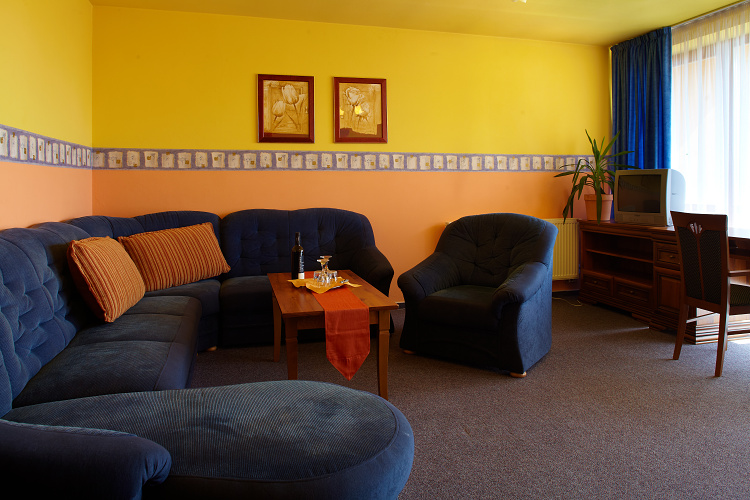 samostatné ložnice je zde k dispozici obývací pokoj s televizí a