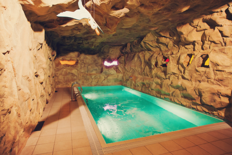 Příjemnou relaxaci nabízí v zajímavém prostředí umístěný bazén s
