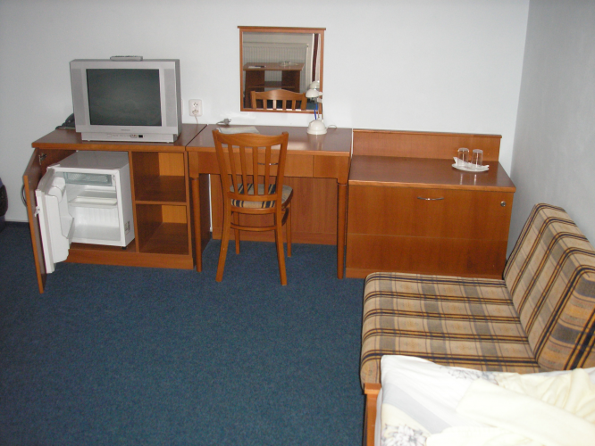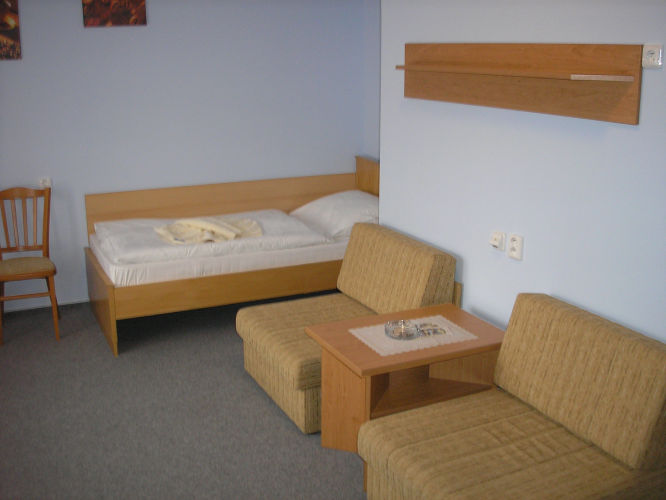 Hotel má 29 pokojů, z toho 3 pokoje s manželskou postí, 2 pokoje s vanou. Je zde možnost ubytování pro invalidy (1 pokoj). Pokoje jsou vybaveny klimatizací. Ubytování je možné v jedno nebo dvoulůžkových pokojích. Pokoje jsou vybaveny minibarem, sprchou a wc.Popis okolí