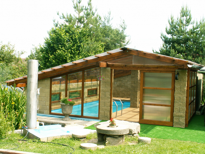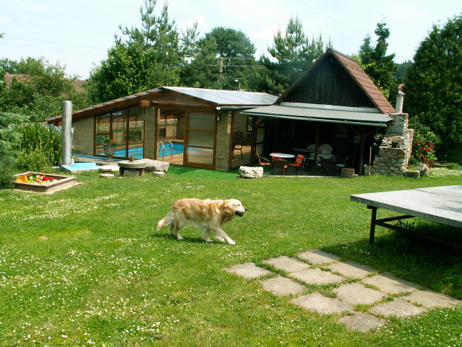 Na zahradě krytý vyhřívaný bazén, kde se dá koupat a posedět i za špatného počasí. Pro děti pískoviště,skluzavka,houpačky,stolní tenis,košíková,kroket.