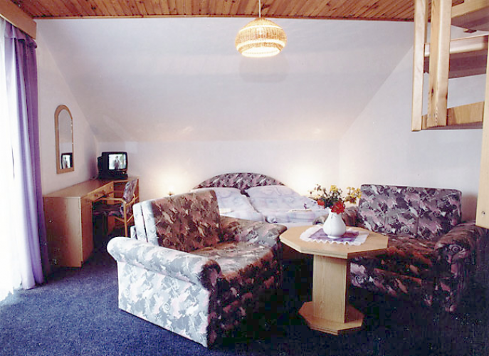 sedacím koutem, WC, koupelnou, TV-SAT. V ceně ubytování je zahrnuta