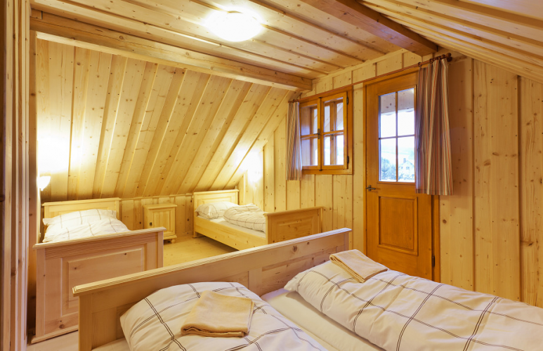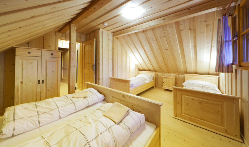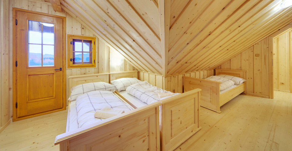 V podkroví – jeden dvou lůžkový pokoj, jeden tří