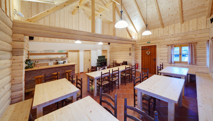 stoly, lavice a pohodlné židle poskytují posezení přibližně 40 osobám.