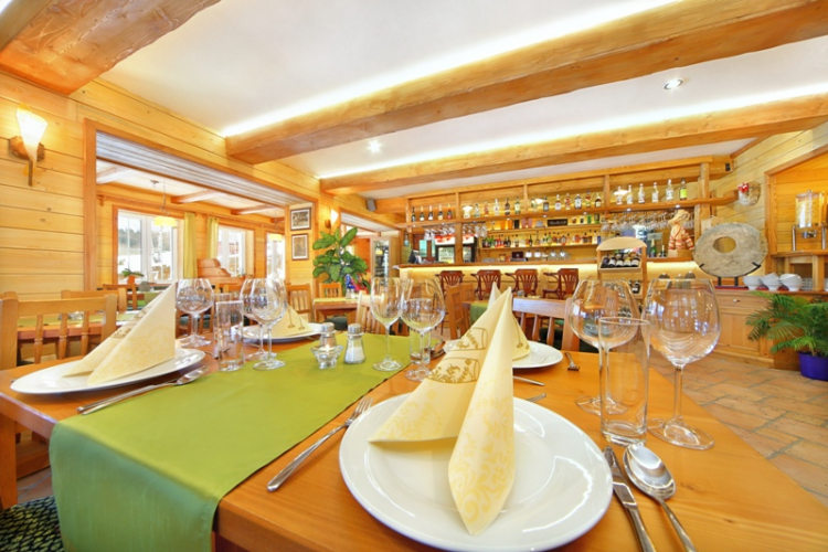 prostorná a útulná jídelna s barem a v létě venkovní terasa.