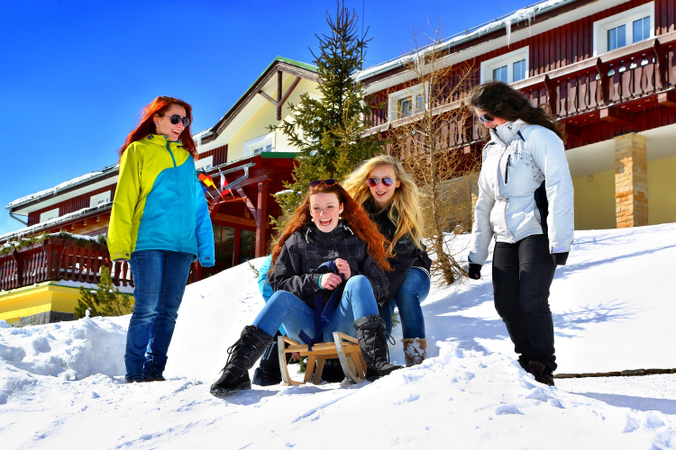 snowtubingu nebo sněhovém kolotoči. Zastávka skibusu, který Vás zdarma odveze