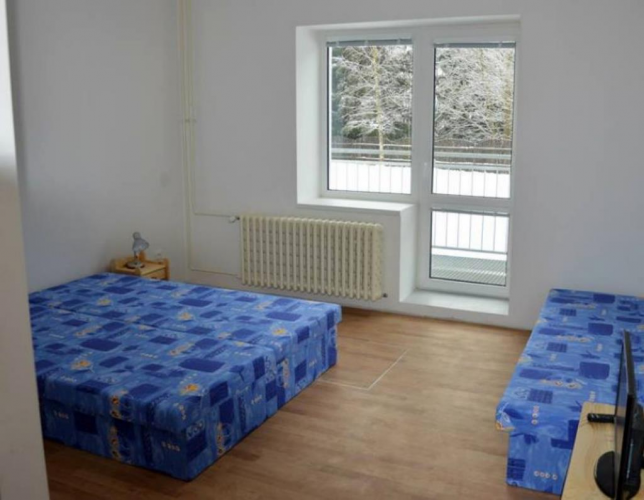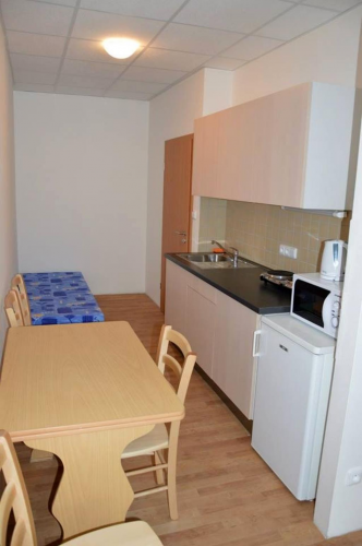 - 15 čtyřlůžkových apartmá s kuchyňkou, sprchou, WC a balkonem