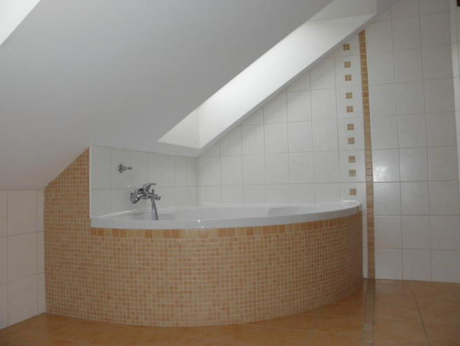 chodby velké kopelny s vanou, sprchovým koutem a wc vč. umyvadla, dvou