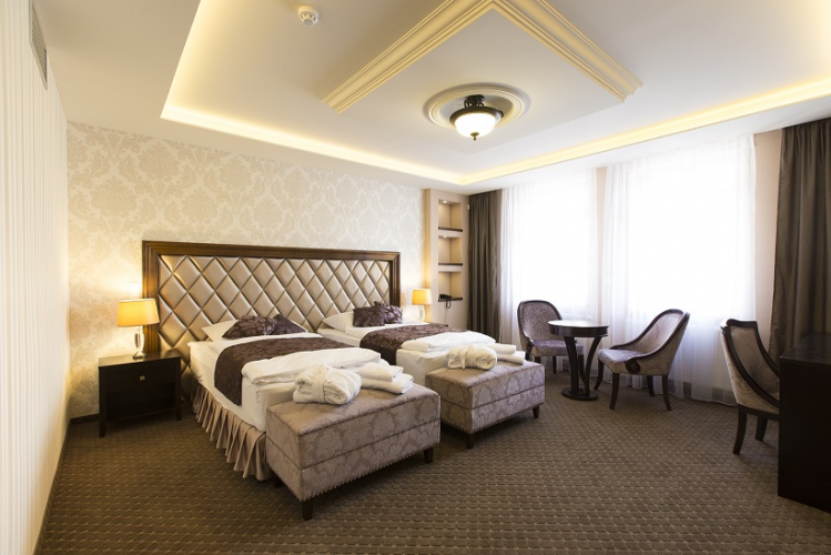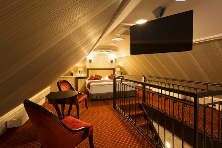 V hotelu je 23 nadstandardně vybavených pokojů s nejmodernějšími technologiemi, z toho 8 apartmánů a několik pokojů přizpůsobených pro speciální účely. Všechny pokoje disponují nezávislou klimatizací a vzduchotechnikou. Televizní systém IPTV byl v nejmodernější verzi nainstalován právě zde jako první v České republice. Pokoje jsou vybaveny telefony, minibary, trezory, karetním systémem otvírání dveří a mají koupelnu s vanou nebo sprchou, WC a bidetem. Pokrytí WI-FI po celém hotelu je samozřejmostí.