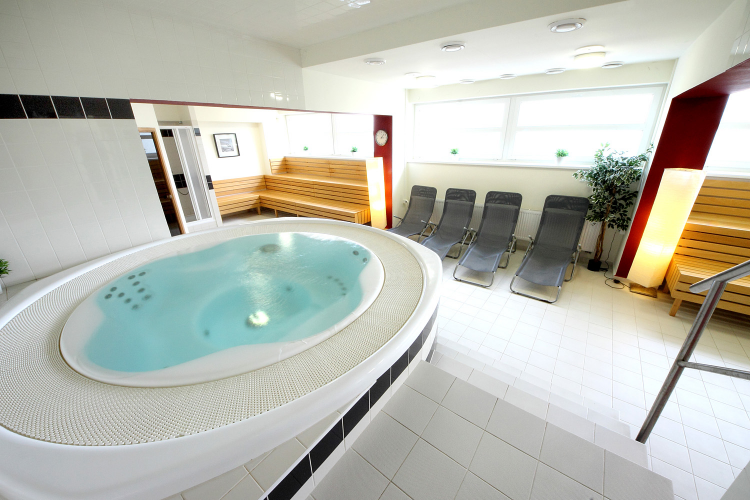 vířivce, finské sauně, páře se solnou tryskou a hvězdným nebem nebo při