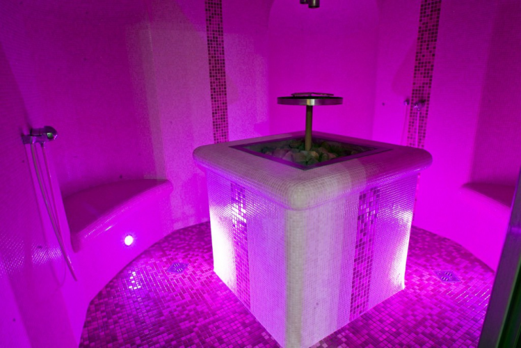 Solná vinná lázeň která čistí kůži, stimuluje krevní oběh a zmírňuje dechové obtíže. Je zde sálavé teplo okolo 30°C s esencí Alpských bylin. Kamenná bylinková lázeň využívá sálavého tepla ze saunových kamen, uprostřed lázně je umístěn talíř s bylinkami, který je každé 3 min. zkrápěn pramínkem vody. Zde je teplota mezi 55-65 °C s vlhkostí 20-40%. Parní sauna či Laconium v této kabině můžeme mít jak parní saunu s teplotou kolem 55 °C a vlhkostí až 72% s inhalací dle vonné esence, tak také Laconium, což je suché teplo bez páry ve stejné teplotě.