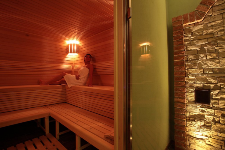 Dále následuje „Saunový svět“ kde naleznete 4 druhy saun, ochlazující vědro či sprchy, které umí závalový déšť. Finská sauna voní smrkovým dřevem a je zde teplota 80-95 °C s vlhkostí 3-12%. Kneippova vinařská stezka, se střídajícími se nádržemi se studenou a teplou vodou, výborně napomáhá rekonvalescenci cévního aparátu dolních končetin, zvláště na těžké nohy a slouží jako prevence křečových žil.