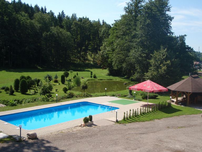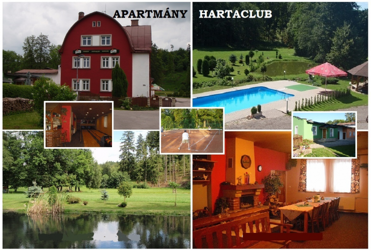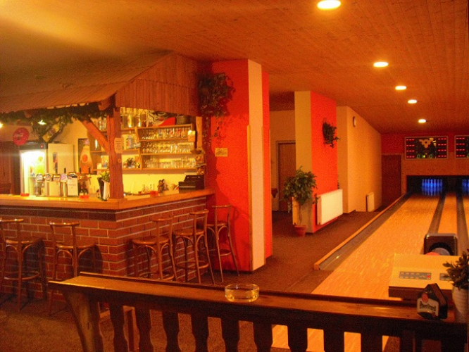 k dispozici bar, bowling, squash, sauna, tenis, letní bazén 12x6 m, salónek (svatby, školení, srazy), altán s grilem,