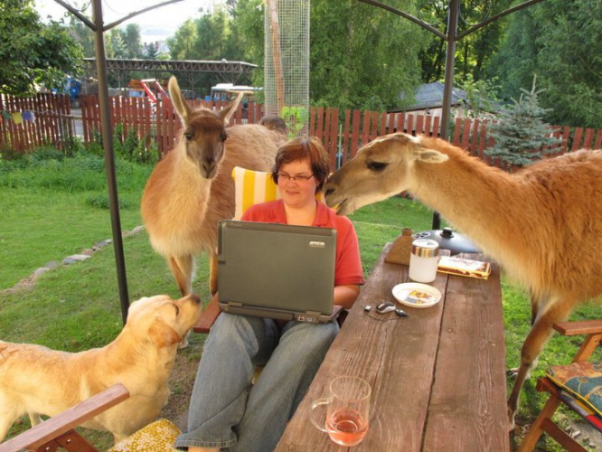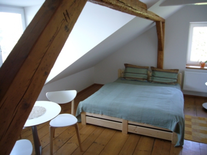 Ubytování v podkrovních pokojích vybavených vlastním sociálním zázemím. Dva pokoje jsou s výhledem na zahradu s lamami. Na dvoulůžkovém pokoji je manželská postel, hrnky a talířky, varná konvice, ručníky. K dipozici je mikrovlnná trouba a lednice.
